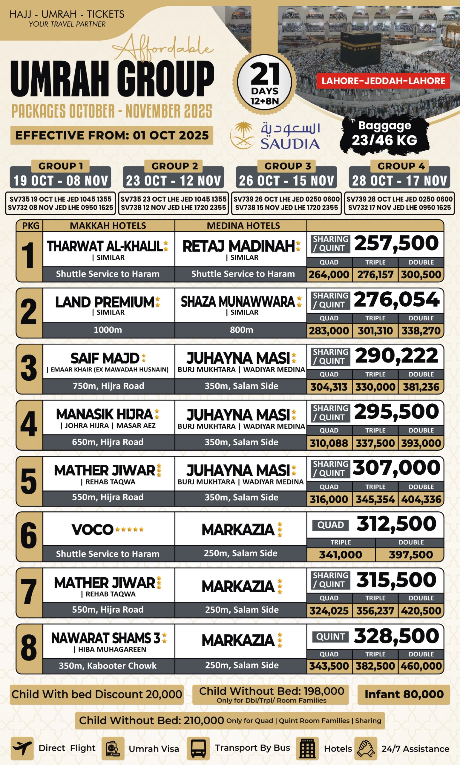 21 Days Umrah Group Package With Tickets Exe Lahore.